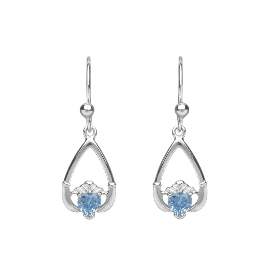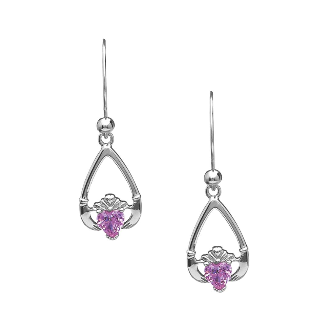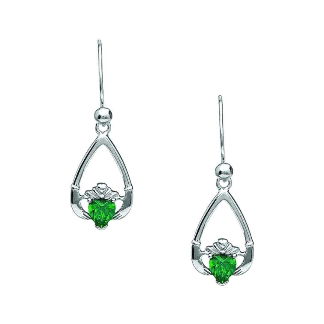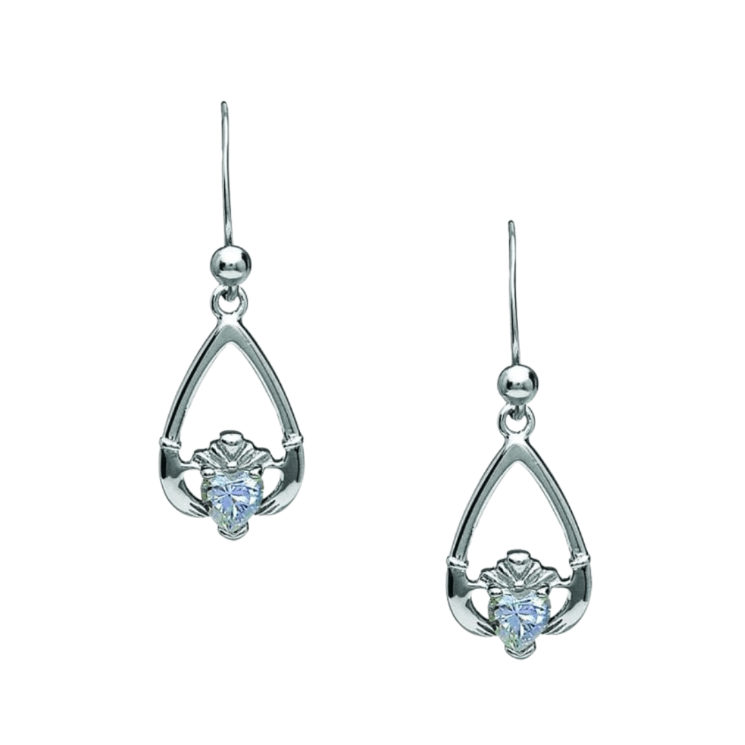 Sterling Silver Claddagh Birthstone Earrings