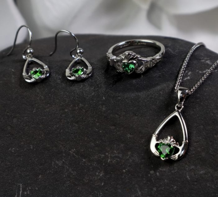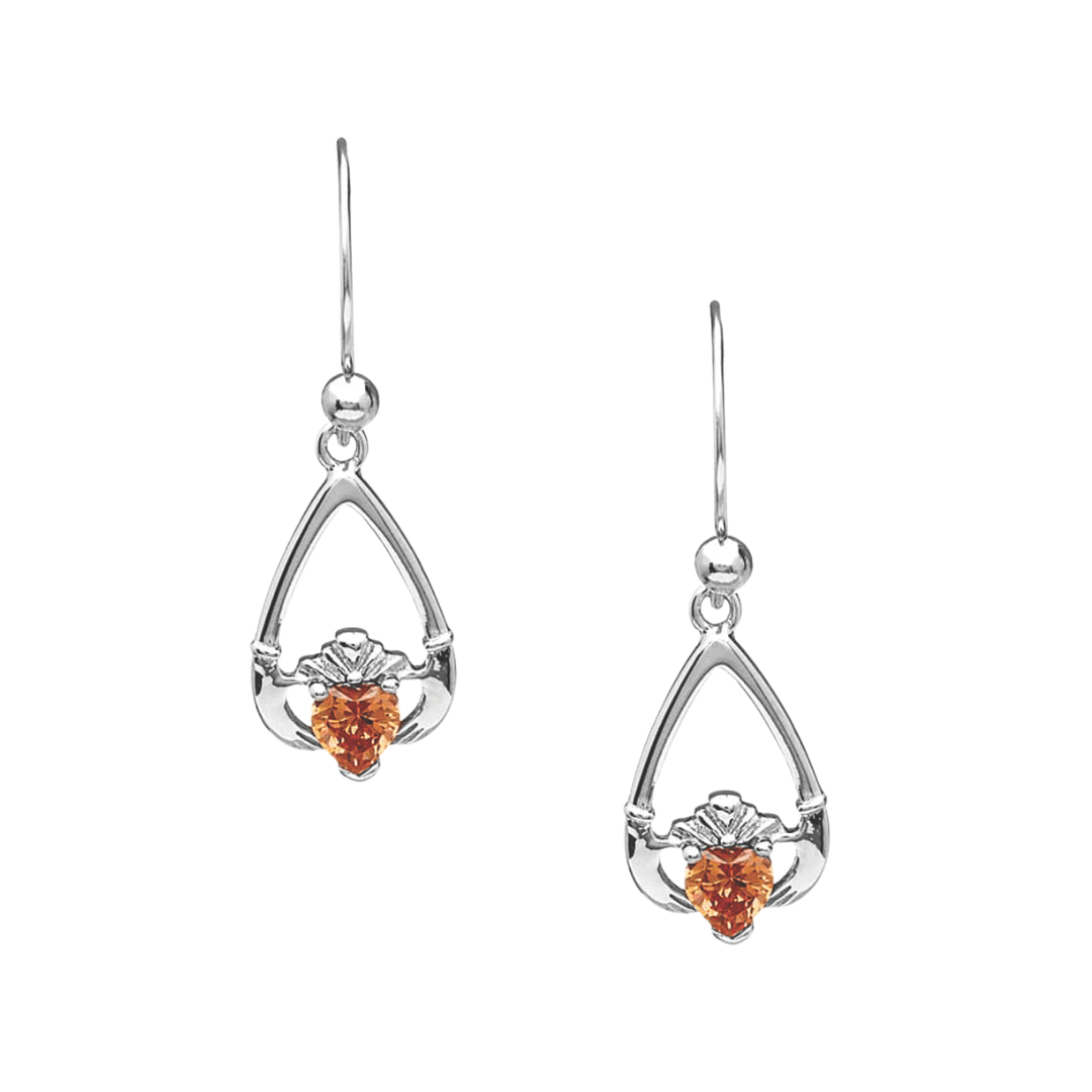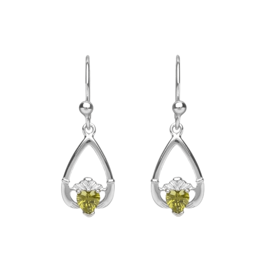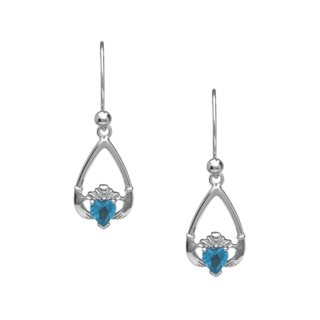 Sterling Silver Claddagh Birthstone Earrings